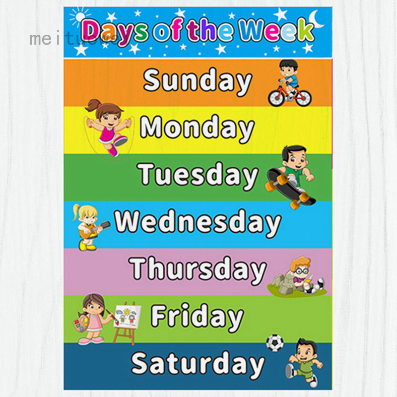 Days Of The Week Poster Wall Chart Educational Kids Child Jungle Animals Theme Early Learning Centre Elc from i.ebayimg.com Lunch ideas & healthy snacks for teens. For each day of the week they successfully achieve their goal, have them check off the day on the chart. 4 alphabet, months of the year, weather, days of the week calendar for kids, abc posters for toddlers wall decor art, charts for kindergarten classroom prek or homeschool, educational laminated 11x17. This practice will make the kids thorough in knowing the months of the year. Days of the week, months, years, seasons, and weather your child will begin each day by using the pieces to update the chart with today's information; This colorful chart of weekday names attracts and holds your child's attention; Skip to main search results. Kids in action by greg & steve;